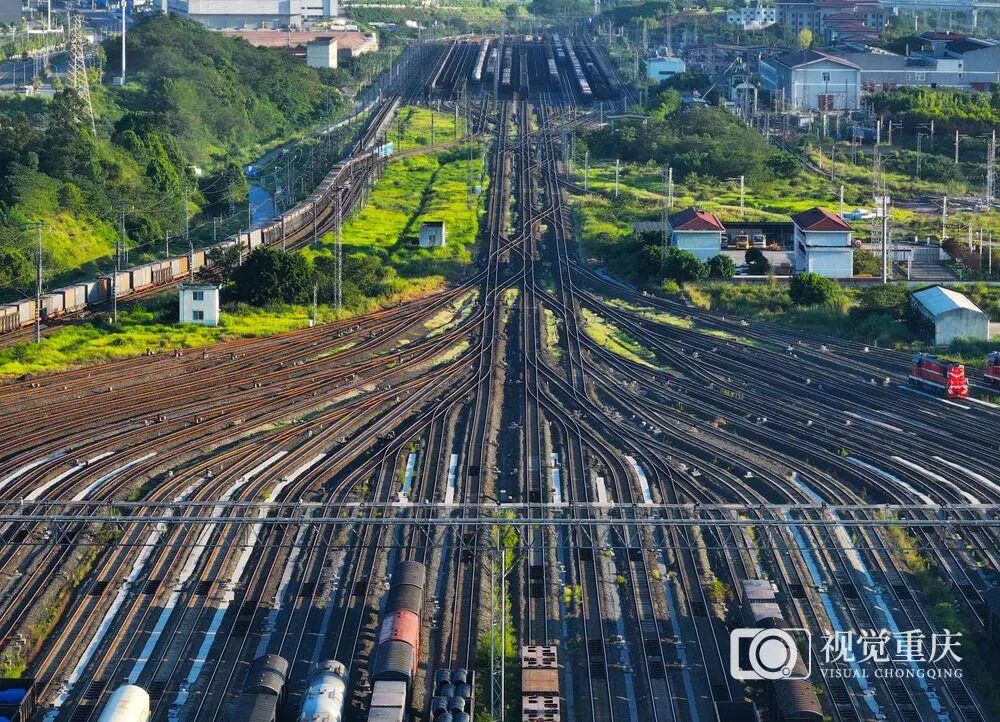 ▲2025年8月18日,重庆兴隆场编组站,南来北往的国际、国内货物列车在这里重新排列组合,驶向世界各地。记者 龙帆 摄/视觉重庆