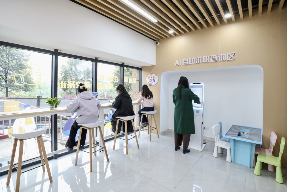 智慧中枢,让服务触手可及。驿站内,科技与人情味交融。AI智能求职一体机宛如一名24小时在线的“求职数字顾问”,为需要的人提供简历优化、模拟面试等功能,帮助居民跨越数字鸿沟。大厅的高清LED大屏实时滚动播放海量招聘信息,而“职启播客间”则定期举办“直播带岗”活动,让企业HR与求职者“屏对屏”交流,实现岗位的精准推送与高效匹配。 资源枢纽,激活就业“一盘棋”。驿站深度整合资源,主动对接政府政策、联动辖区企业,串联起街区内三大核心培训就业项目,为居民提供从职业测评、技能培训报名、岗位匹配到面试指导的“一站式”全链条服务,将分散的就业信息和服务拧成一股绳。截至当前,驿站已累计服务求职者1158人次,成为社区最具活力的就业信息集散地。
