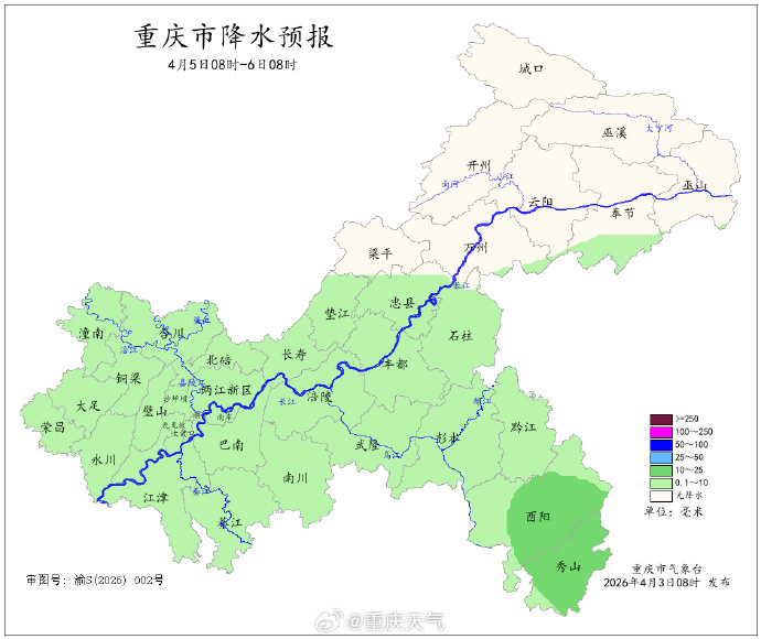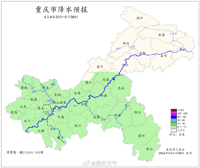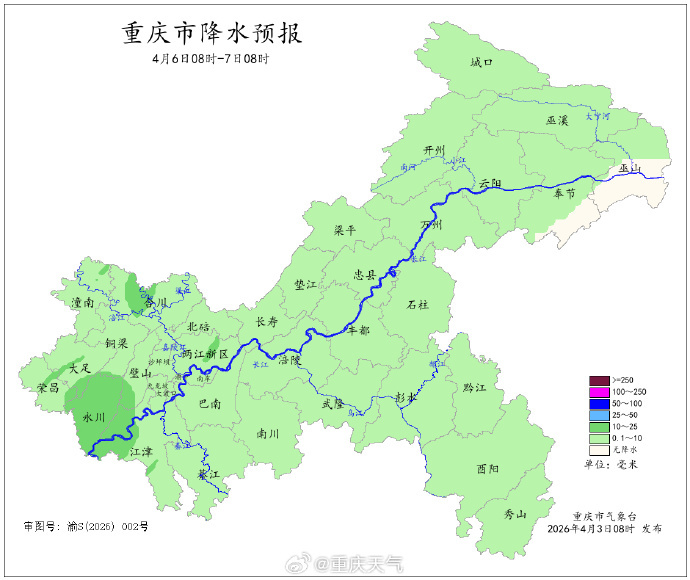 重庆市气象台发布消息,重庆清明期间晴雨相间,中西部地区多夜雨,未来三天最高或30℃。 天气预报 3日白天到夜间,西部地区多云,其余地区阴天转多云,早上和夜间局地有阵雨,气温10~26℃;中心城区多云,气温15~25℃。