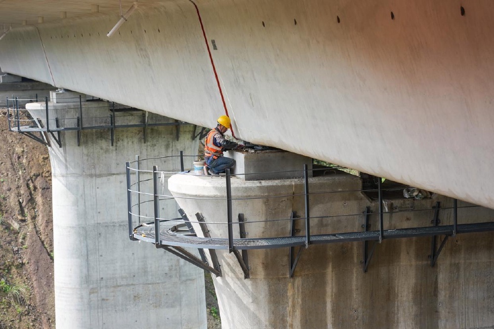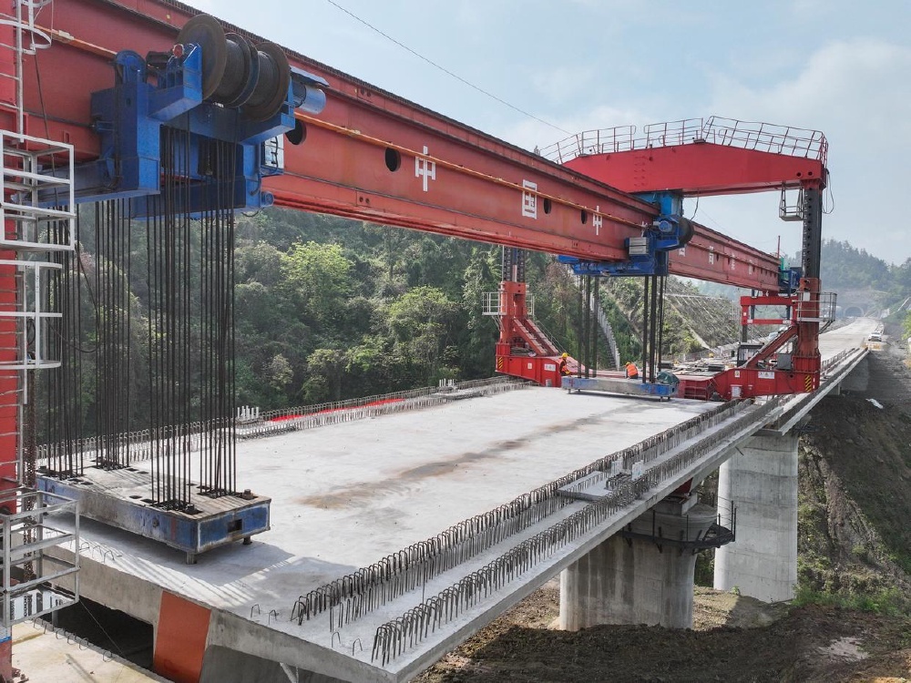 ▲4月3日,建设者在四川省达州市西渝高铁康渝段槽沟中桥架梁施工现场作业。新华社记者 王曦 摄