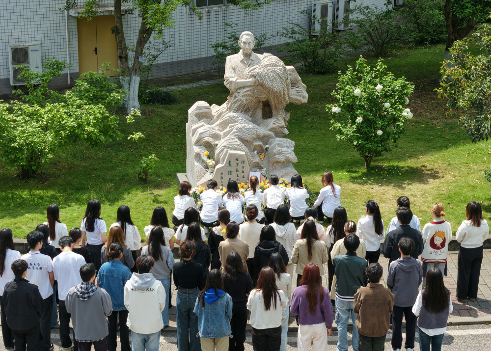 ▲2026年4月3日,西南大学校内的袁隆平塑像前,该校校史宣讲团的讲解员和化学化工学院的研究生们一道追思世界杂交水稻之父袁隆平院士。特约摄影 秦廷富 当日,在位于北碚区西南大学校内的袁隆平塑像前,来自该校校史宣讲团的讲解员们和来自化学化工学院的研究生同学们一道,在这里举行清明节主题活动,向世界杂交水稻之父袁隆平院士表达追思和缅怀。
