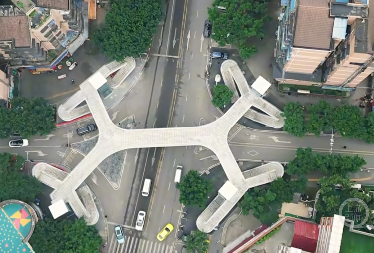 两江新区聚贤金街天桥。 突出便民实用 构建连续顺畅的步行网络 人行天桥与地下通道的布局,紧密围绕行人实际过街需求,科学合理控制设施间距,保障行人就近安全过街。通过人行通廊实现建筑之间无缝衔接,构建人车分流的连续步行系统,最大限度减少行人对机动车通行的干扰。 同时,强化与公交、轨道站点的衔接配套,优化站点距离设置,提升整体出行便利性。对既有立体过街设施,在条件允许时增设风雨连廊,打造舒适、安全、人性化的立体过街环境。