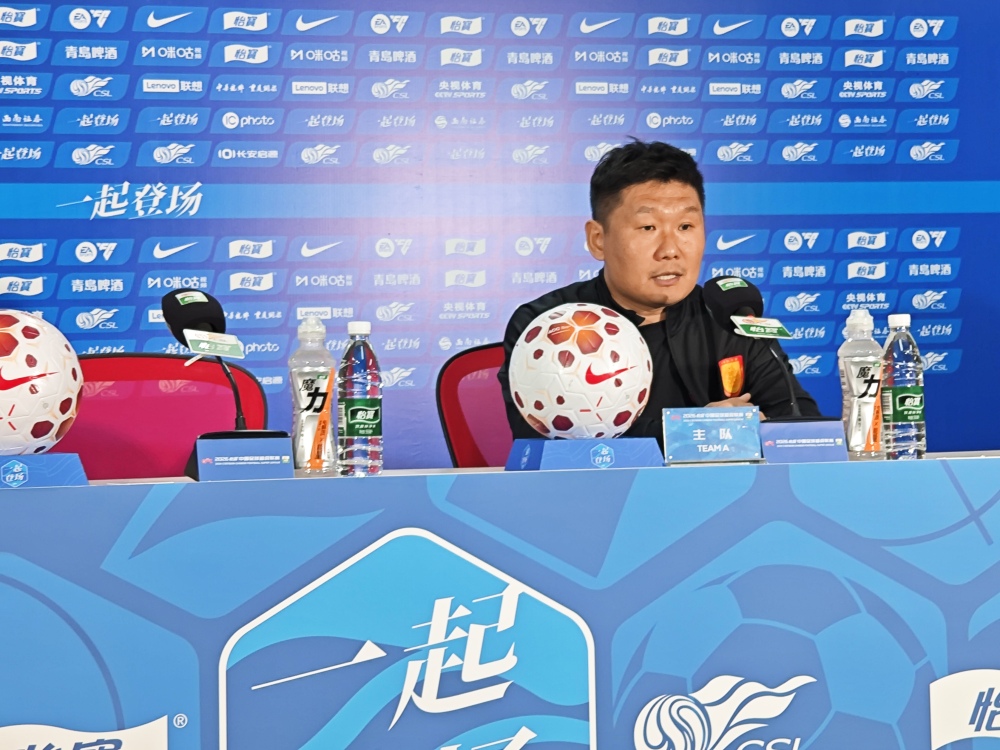 ▲赛后新闻发布会上,重庆铜梁龙队主教练刘建业表示球队目标是保级,不能放松。记者 金鑫 摄 深圳新鹏城队主教练陈涛率先亮相,他和重庆铜梁龙队主教练刘建业当过多年队友,住过同一间宿舍,2023年还在深圳队共事过几个月,渊源颇深。陈涛表示:“很遗憾,没有取得预期结果,对远道而来的深圳球迷感到抱歉。红牌是比较意外的,造成了场面被动。刘建业把铜梁龙带得非常好,祝愿他未来事业顺利。”