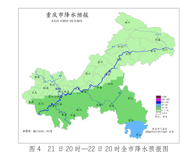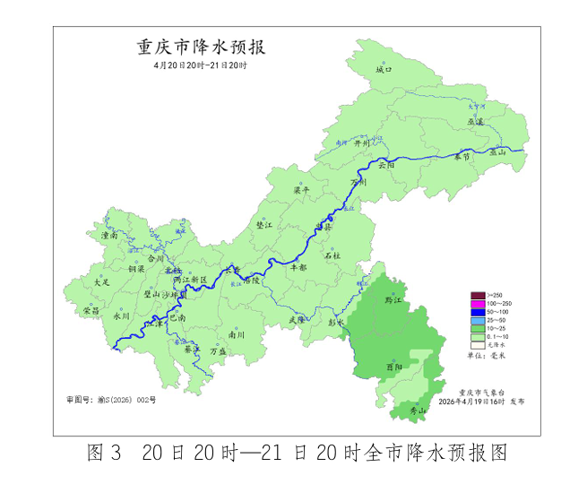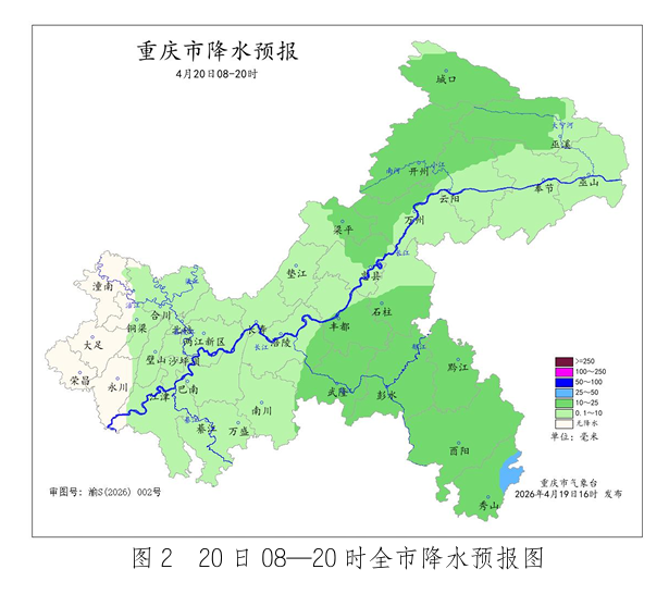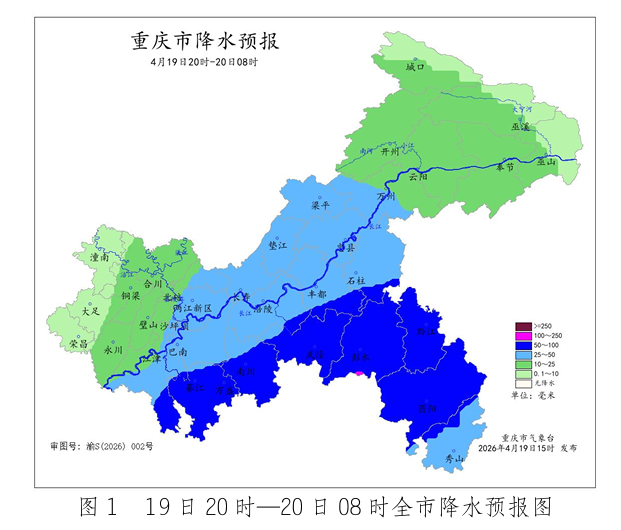 重庆市气象台预计19日夜间强降雨主要影响中西部偏南和东南部地区,雨量50~70毫米;20日白天降雨减弱。20日夜间到22日白天,各地有阵雨,局地大雨(25~40毫米)。 未来三天天气预报 19日夜间(19日20时—20日08时),中西部和东南部大部地区中到大雨,部分地区暴雨(50~70毫米),个别地区大暴雨(100~120 毫米),雷雨时伴有7~9级阵性大风,局地有冰雹,其余地区小到中雨,气温13~26℃;中心城区中到大雨,气温19~25℃。 20日白天(20日08—20时),西部偏西地区阵雨转阴天,其余地区小到中雨,局地大雨(25~30毫米),气温13~25℃;中心城区阵雨转阴天,气温19~24℃。 20日夜间到21日白天(20日20时—21日20时),各地阴天有阵雨,雨量小到中雨,气温12~23℃;中心城区阵雨,气温19~22℃。 21日夜间到22日白天(21日20时—22日20时),中东部- 1地区中到大雨(25~40毫米)转阵雨,其余地区阵雨转阴天间多云,气温11~24℃;中心城区小到中雨转阴天,气温17~24℃。