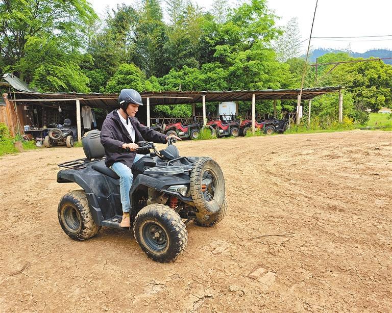 陶杰 “戴好安全帽,准备出发了!”在318沙滩车俱乐部,主理人陶杰挥挥手,一队沙滩车轰鸣着驶入林间跑道,马达声打破山野宁静。 这位皮肤黝黑,笑容爽朗的“90后”小伙,是北碚区歇马街道小湾村人。“我们村在山下,离城区更近。虎头村在山上,小时候都是步行上山,觉得这里老远了,根本没想过会来这里干一番事业。”陶杰笑着说。 此前,陶杰在北碚城区做过副食经营,跑过建材生意。但他心底始终热爱户外运动,一直想把兴趣做成事业。2023年,经过多方考察,陶杰和朋友相约来到虎头村共同创业:朋友深耕马场运营,他则跨界打造了沙滩车俱乐部。 “从城区来到村里,变得更沉稳了。”陶杰坦言,以前做事心浮气躁,遇到问题容易着急;现在每天对着青山绿水,心态慢慢沉静下来,行事变得更稳当、更有耐心,整个人也多了一份从容。 俱乐部里的员工也是年轻人,27岁的阮先生来自贵州,此前从事新能源汽车电池相关工作,现在在俱乐部担任教练兼维修。陶杰还主动对接大学生群体,提供周末兼职岗位,为更多年轻人搭建实践锻炼的平台。 “扎根乡村,能把真正热爱的事做成事业,这就是最开心的事。”站在跑道旁,陶杰望着成排的沙滩车,眼里满是热忱。在他心里,乡村早已不只是谋生之地,更是安放热爱、绽放青春的理想舞台。 03 守着家人干事业 日子安稳又舒心