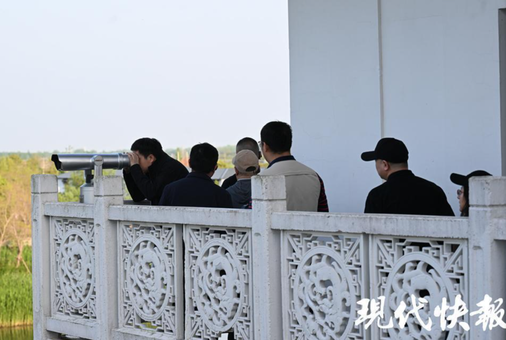 九龙口名字因何而来?九龙口国家湿地公园地处淮安、扬州、盐城三市交界处,境内蚬河、林上河、钱沟河、安丰河、新舍河、溪河、莫河、涧河、城河等9条自然河道汇集于龙珠岛,犹如“九龙抢珠”,因此得名“九龙口”。 一行人乘船游览九龙口,阳光照耀在水面上,波光粼粼,阵阵涟漪泛起在湖面上,万亩芦苇荡犹如绿浪翻滚,远处的湖面上,几只鸟忽而掠过水面,忽而飞向天际,好不惬意。