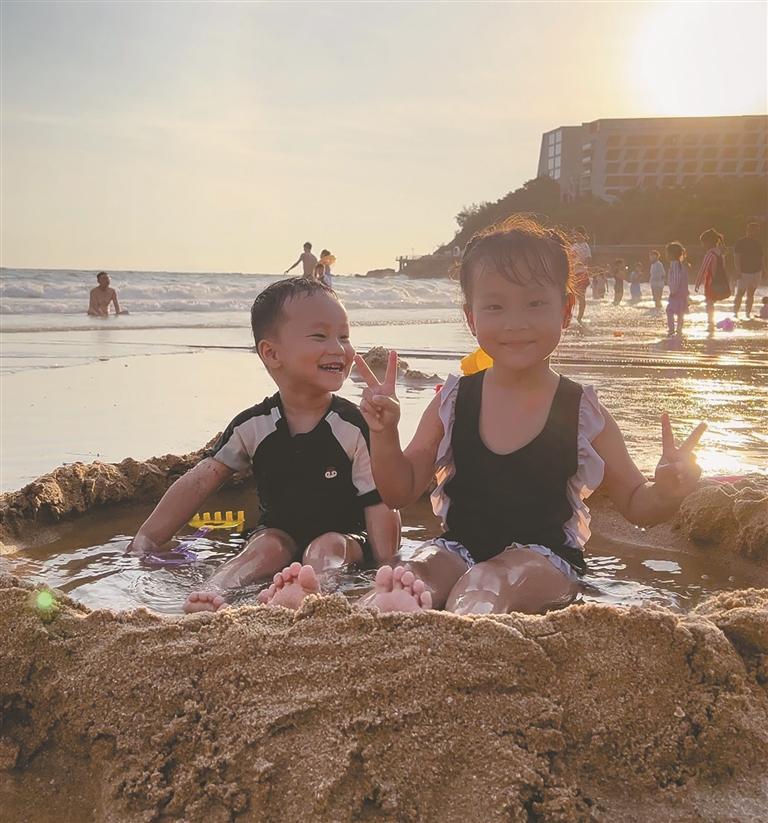 ▲栩栩和霖霖在海滩一起堆沙 傍晚6点,是孩子们的专属开饭时间。喷香米饭、双椒鸡、清爽时蔬刚摆上桌,栩栩和霖霖就迫不及待开动:“哇,今天的菜是我们最喜欢的!”栩栩的勺子像长了眼睛一样,迅速从碗里找出鸡腿,一扭头发现弟弟眼巴巴地望着鸡爪,便悄悄捞起来,晃悠几圈后稳稳放进弟弟碗里。 饭后的休闲时光也从不缺少乐趣。“栩栩总像小领导,带着弟弟玩,还会在他身上涂鸦,画些有意思的图案,霖霖不仅不闹,还对着镜子笑。”付先生笑着回忆,栩栩还会给霖霖“上课”,摆好小凳子当老师,教认数字、念儿歌,霖霖学得有模有样,认真的模样让全家忍俊不禁。 周末的时光更显惬意。周一到周五吃惯了家常菜,周六全家会出门“下馆子”,满足两个“小吃货”的愿望;偶尔也会策划短途周边游,泡温泉、游泳等活动都是孩子们的最爱。周日是家庭聚餐日,爷爷奶奶齐聚,孩子们围着长辈撒娇,大人们聊着家常,厨房热气腾腾,客厅笑语不断。 育儿之道 教育理念与平衡艺术 在教育孩子方面,夫妻俩理念一致:和孩子做朋友,但该严肃时绝不妥协,要培养他们正确的认知和习惯。他们注重在日常生活中潜移默化地培养孩子的优良习惯,比如规律作息、自己整理玩具等。许女士认为,让孩子从小事做起,比单纯说教更有效。 两个孩子平常难免起冲突,夫妻俩的处理方式很理性。“我们不会一味批评,而是先问清事情起因,分析是谁的问题,再好好引导。”许女士举例,有次姐弟俩抢玩具吵架,她没有立刻介入,而是耐心听他们说完,再引导“玩具可以一起玩,分享更快乐”,最后栩栩主动递出玩具,霖霖提议一起玩,两人很快和好如初。 “公平对待是我们的原则。”许女士强调,虽然霖霖因为生病需要更多照顾,但他们从不会忽视栩栩。买玩具、衣服都会买两份,表扬孩子时兼顾姐弟俩,“我们常说,姐姐和弟弟都是爸爸妈妈最珍贵的宝贝。”两个孩子也从未觉得不公平,相处十分融洽。 除了家庭内部的教养,夫妻俩也非常重视带孩子走出家门,亲近自然。每逢周末天气好,他们常带孩子们去逛公园或是爬山。“户外活动不仅能锻炼身体,还能让孩子接触自然,学会观察和感受世界。”付先生说。 每逢长假,他们还会安排家庭旅行,去过海边玩沙、草原骑马,也参观过博物馆、科技馆。“旅行是开阔眼界的好机会,孩子在不同环境中学会适应,也增进了彼此之间的情感。”许女士补充道,他们希望通过这样的方式,让两个孩子身心健康、视野开阔,在爱与陪伴中快乐成长。 家庭愿景 平淡相守岁岁安康 谈及对孩子的未来期望,付先生和许女士异口同声:“健康快乐第一位,希望他们健健康康长大,活成自己喜欢的样子。”对于姐弟情,他们期许道:“希望长大后互帮互助、互相扶持,不管遇到什么困难,都知道有最亲的人可以依靠,感情一直这么好。”
